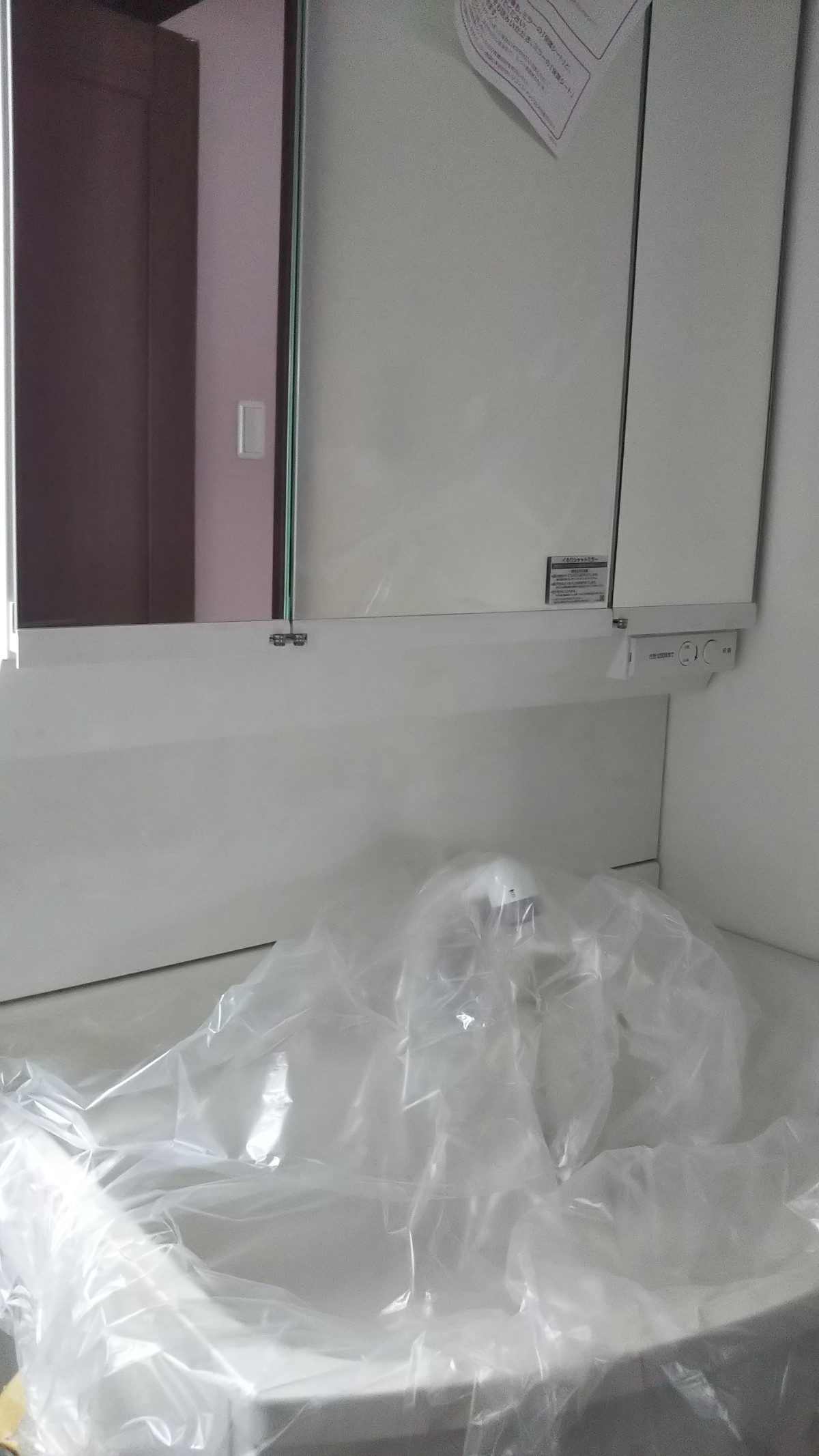 床を保護するための養生シートが床一面にありました。
